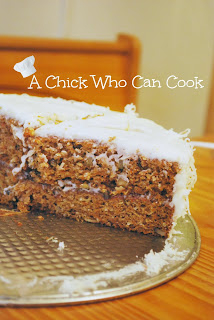 Last Friday I held a spaghetti dinner for my in laws. I was struggling to really figure out what the heck to make for a dessert and then it came to me that they all love carrot cake. I have never made one before believe it or not and it is one of my favorite cakes! It was a hit and it was almost gone as you see by the photo. I was afraid I was not going to be able to take a photo of it and thank god there was this one piece left the next day and then I ate it for breakfast. Any ways it turned out great, it was moist, simple, and the taste was perfect.
